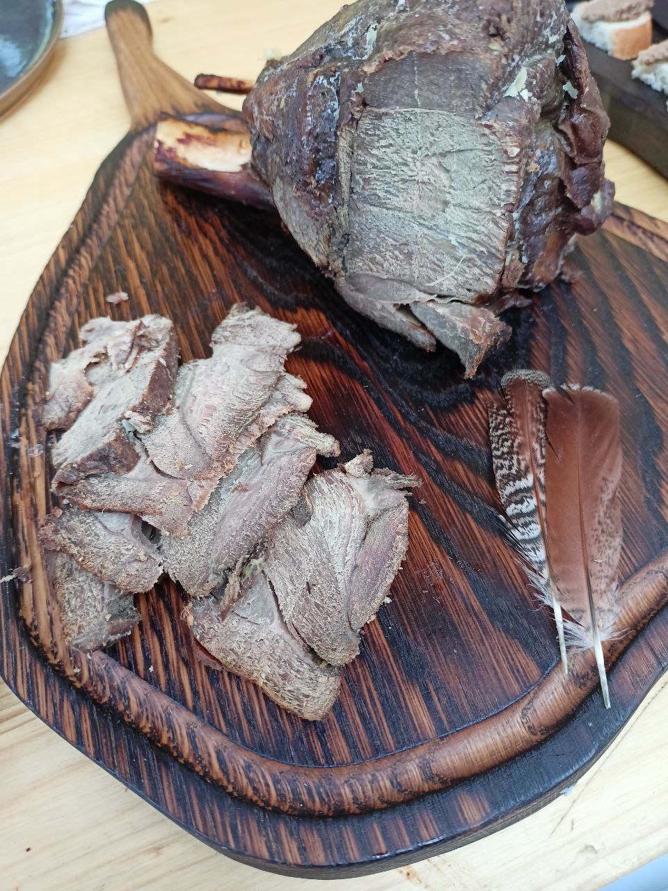 Состав: Рулька кабана, соль, перец, розмарин, чабрец, шалфей, пиво.